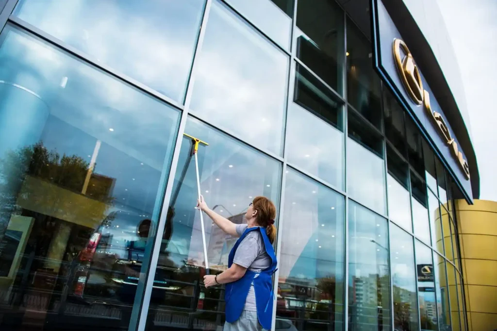Removal of grime, smudges, and pollution residues for enhanced business appearance